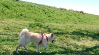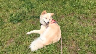 犬が増えてきたからもう帰ろうかとリードをつけたら、またしてもつるちゃん突然クネクネ。